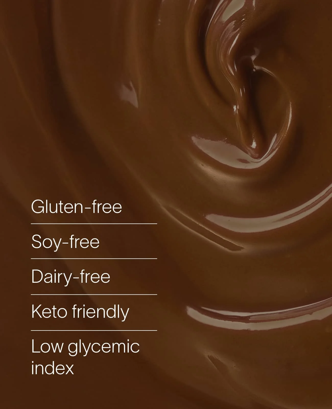 Low sugar, plant‑based, low‑glycemic, gluten‑free, soy‑free, vegan, and non‑GMO, with 0% palm oil.